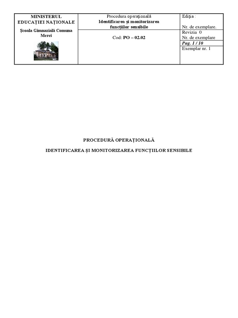 In cazul stabilirii functiilor sensibile in cadrul unei institutii publice cf. Procedura de identificare functii sensibile nr 395 2017 procedura de identificare functii sensibile nr 395 2017 9740 kb. Revizia 0 procedură operațională ediţia i întocmirea actualizarea și școala gimnazială nicolae aprobarea fișelor de post. Deschideți resursa în altă fereastră.
