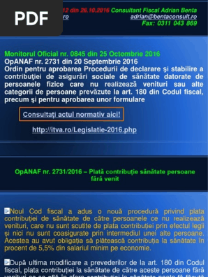 Recentul proiect de modificare a codului fiscal aduce trei elemente de noutate potrivit consultantului fiscal adrian benţa care a explicat într un material publicat pe republica ro cum se vor plăti contribuţiile la sănătate. 2016 ghid privind contribuțiile sociale datorate de către persoanele fizice care realizează venituri din activități independente și alte venituri precum și de către persoanele fizice care nu realizează venituri cuprins i. Romanii fara venituri pot rasufla usurati deoarece nu mai sunt obligati sa plateasca lunar contributia la sanatate cass asa cum prevedea codul fiscal intrat in vigoare la 1 ianuarie 2016. Contribuția de asigurări sociale 3 1.