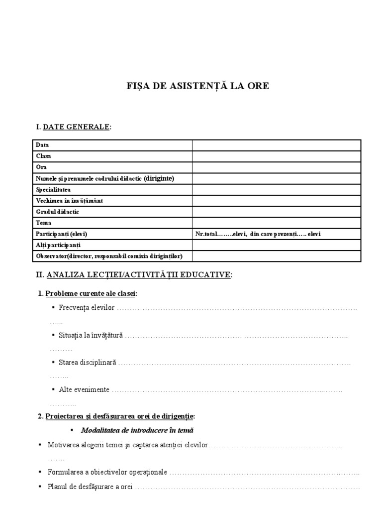 Este o fisa de observare ce am intocmit o pentru un curs de specializare in invatamantul special. Directorul sau directorul si responsabilul cm ceac. Fişa de asistenţă la ore. Prima pagină documente management şcolar fisa de asistenta la lectie.