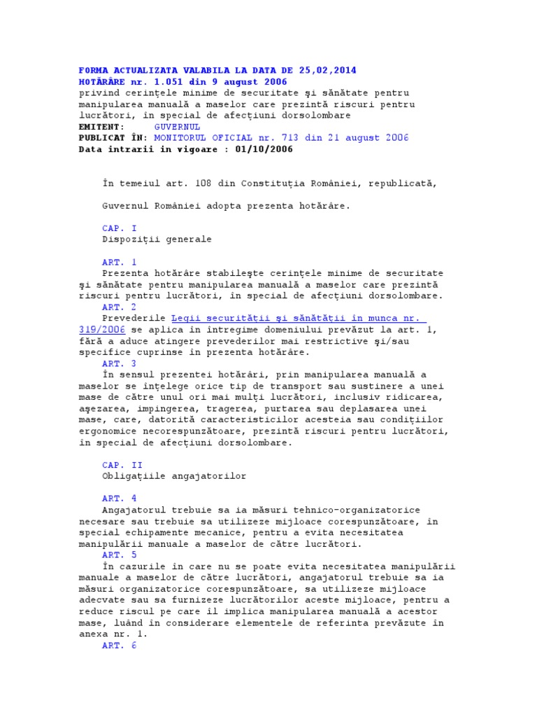 Hg 1028 din 2006 actualizata 2018. Publicat în monitorul oficial nr. Hotararea de guvern 1425 din 2006 hg pentru aprobarea normelor metodologice de aplicare a prevederilor legii securitatii si sanatatii in munca nr. Actualizata in 14 decembrie 2011 prin hg 1242 din 2011. A din legea nr.