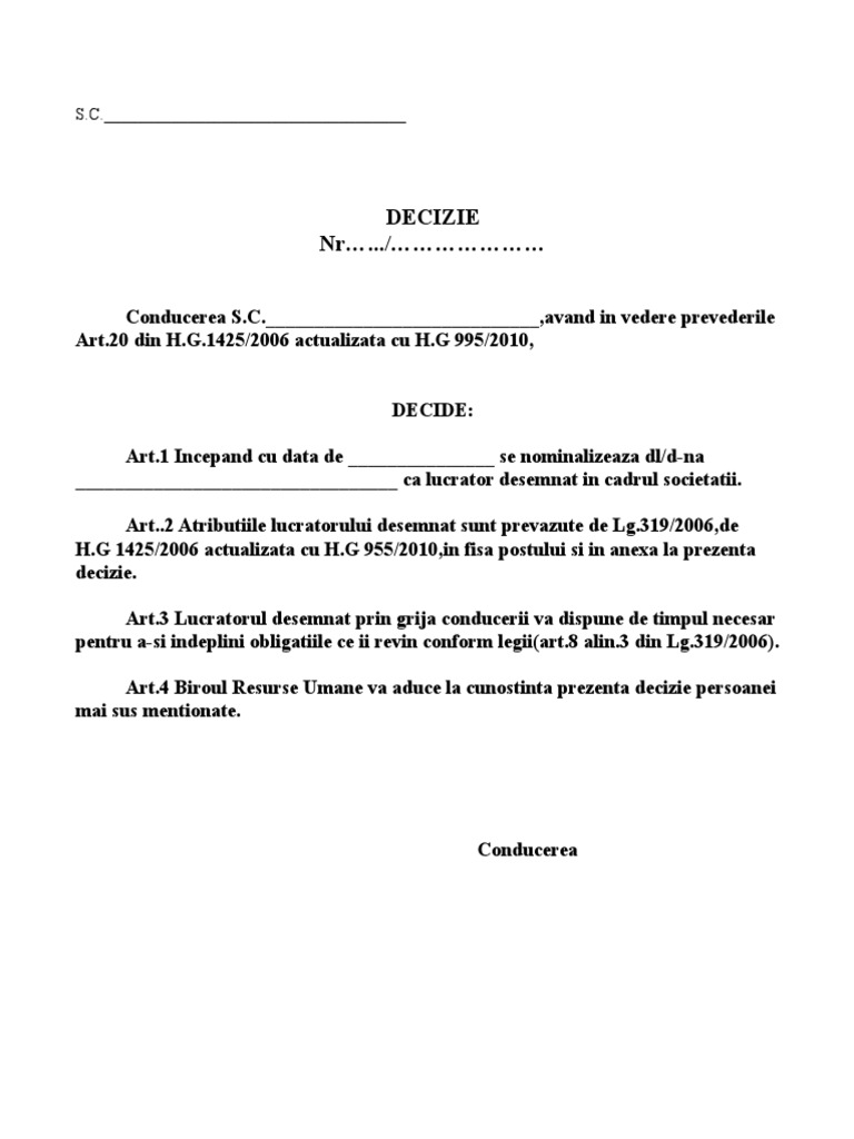 Asumarea de catre angajator a responsabilitatii privind legalitatea desfasurarii activitatii din punct de vedere al securitatii si sanatatii in munca se face pentru activitatile care se desfasoara la sediul social la sediile secundare sau in afara acestora. Acest document poate avea modificări ulterioare. 981 din 14 decembrie 2018.