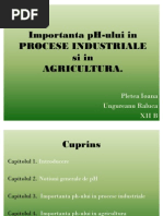Importanta ph ului in agricultura. Ph ul solului este un element foarte important necesar a fi cunoscut şi supravegheat deoarece intervine în numeroase mecanisme fizico chimice şi biologice din sol. Ti s a spus ca unele plante au nevoie de soluri usor acide altele din contra de soluri slab alcaline iar majoritatea de soluri neutre. în natură valoarea ph ului variază între 0 acid și 14 bazic. Cunoaşterea ph ului este o problemă importantă în practica analizelor de laborator în controlul calităţii produselor în analiza probelor biologice etc.
