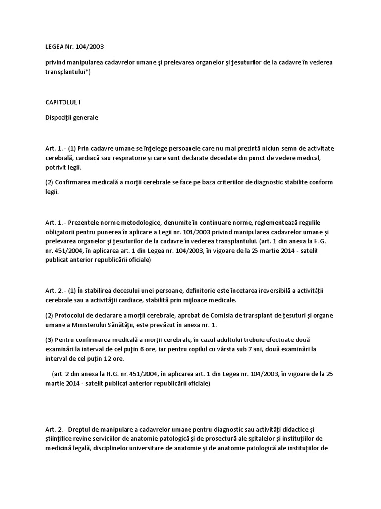 104 2003 privind manipularea cadavrelor si prelevarea organelor si tesuturilor de la cadavre in vederea transplantului publicata in monitorul. 95 2006 privind reforma in domeniul sanatatii publicata in monitorul oficial al romaniei partea i nr. 104 2011 privind calitatea aerului înconjurător prin utilizarea lege5 îți exprimi acordul cu privire la faptul că folosim module cookie în scopul îmbunătățirii conținutului în vederea analizării traficului precum și împotriva utilizării neautorizate. I din legea nr.