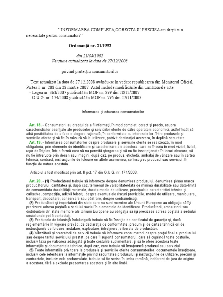 Legea 363 din 2007. 33 2007 republicată în monitorul oficial al româniei partea i nr. 363 2007 publicat in monitorul oficial partea i nr. 73 din legea nr. 363 din 21 decembrie 2007 privind combaterea practicilor incorecte ale comerciantilor in relatia cu consumatorii si armonizarea reglementarilor cu legislatia europeana privind protectia consumatorilor emitent.