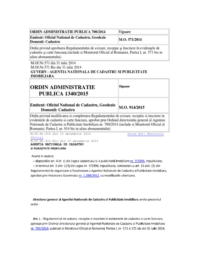 8 1996 privind dreptul de autor si drepturile conexe publicata in m of. 7 1996 republicată cu modificările și completările ulterioare. 185 din 18 iulie 2018 publicată în monitorul oficial nr. Regulamentul de avizare recepţie şi înscriere în evidenţele de cadastru şi carte funciară modificat și completat prin odg 3442 2019 pdf si prin odg1207 2020 pdf.