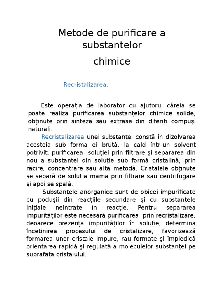Metode De Purificare A Substantelor Chimice