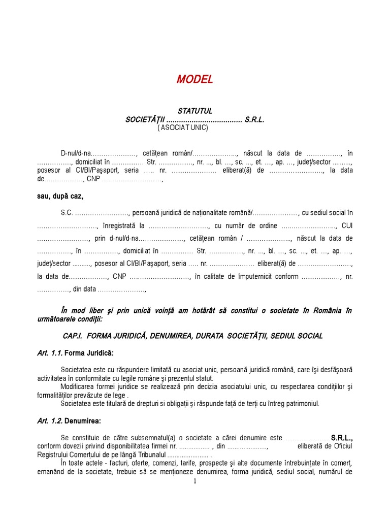 Actul constitutiv al societăţii cu răspundere limitată s r l. Adeverinta pentru studentii ce intrunesc toate conditiile si doresc sa beneficieze de facilitatile legale ce li se ofera. Model act constitutiv societate cu răspundere limitată cu asociat unic. Abonare la blog via email.
