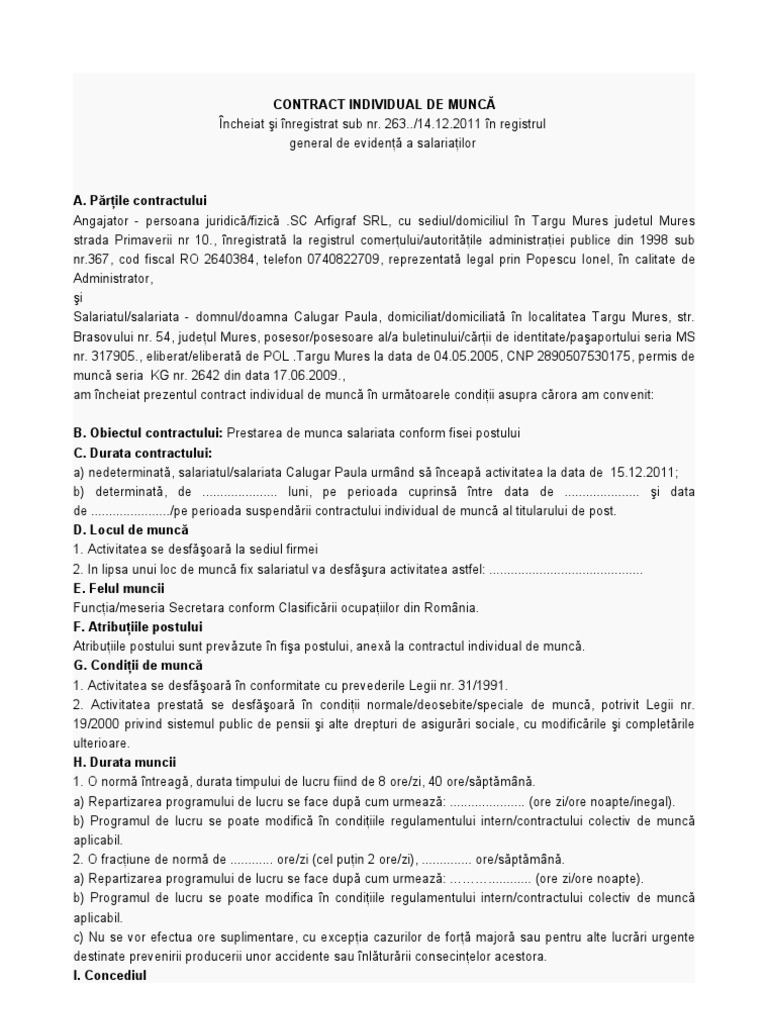 10 admiteri hotărâri prealabile 1 jurisprudență reviste 36 doctrină 3 modele 3 comentarii expert 5 contractul individual de muncă este contractul în temeiul căruia o persoană fizică denumită salariat se obligă să presteze munca pentru și sub. Titlul ii contractul individual de muncă reviste 2 capitolul i încheierea contractului individual de muncă art. 153 2019 reprezinta munca nedeclarata. 53 2003 din codul muncii.