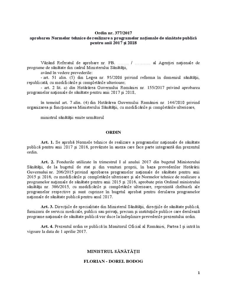Ordin 377 din 2017. 601 din 26 iulie 2017. Al agenției naționale de programe de sănătate din cadrul ministerului sănătăţii având în vedere prevederile. Consiliul concurentei act publicat în monitorul oficial nr. Ordinul nr 377 din 29 06 2017 privind punerea în aplicare a regulamentului de procedură al consiliului concurenţei act emis de.