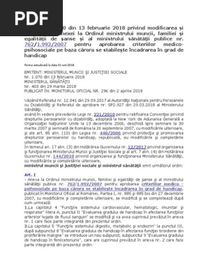 României partea i nr. 948 din 23 decembrie 2014. 86 2014 privind stabilirea unor măsuri de reorganizare la nivelul. Criterii medico psihosociale de încadrare în grad de handicap din 31 august 2007 la data 27 dec 2007 actul a fost aprobat de ordinul 762 2007 capitolul 1.