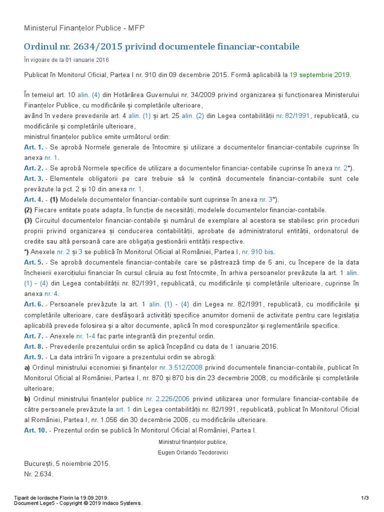 2634 2015 din 5 noiembrie 2015 privind documentele financiar contabile emitent. 2634 2015 privind documentele financiar contabile. 4 din hotărârea guvernului nr. Ministerul finanţelor publice publicat în.