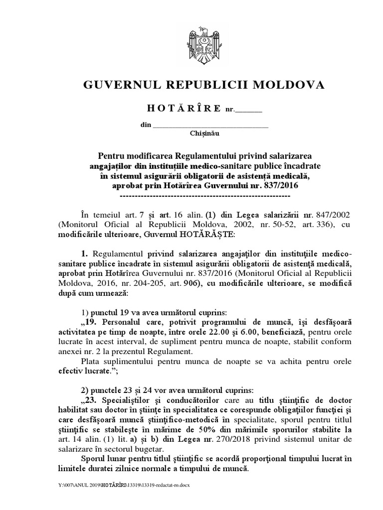 Potrivit proiectului legii salarizarii unitare facut public de psd in cursul zilei de luni 10 04 2017 personalul medical care va lucra in timpul zilelor libere va beneficia de un spor de 100 din salariul de baza. Proiectul salarizarii bugetarilor prezentat marti de ministrul muncii dragos pislaru are ca prioritate realizarea unei reforme in privinta personalului din sanatate. Ministrul muncii lia olguta vasilescu a anuntat ca proiectul legii salarizarii unitare in sectorul public va fi depus luni la parlament astfel incat toti parlamentarii psd sa l poata semna in calitate de coinitiatori. Graficul elaborarii si aplicarii viitoarei legi a salarizarii proiectul legii se finalizeaza la ministerul muncii in septembrie la 1 octombrie guvernul il primeste in prima lectura.