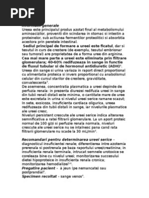 De exemplu in sua si in alte cateva tari concentratia de uree din plasma sau ser uree serica este exprimata ca fiind cantitatea de uree nitrogen bun. Uree crescuta la analize. Ureea și creatinina serică sunt doi parametri biologici utilizați frecvent în special în evaluarea funcției renale. Nivelul de uree din sange.