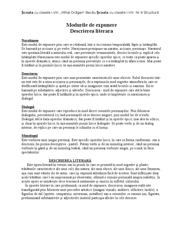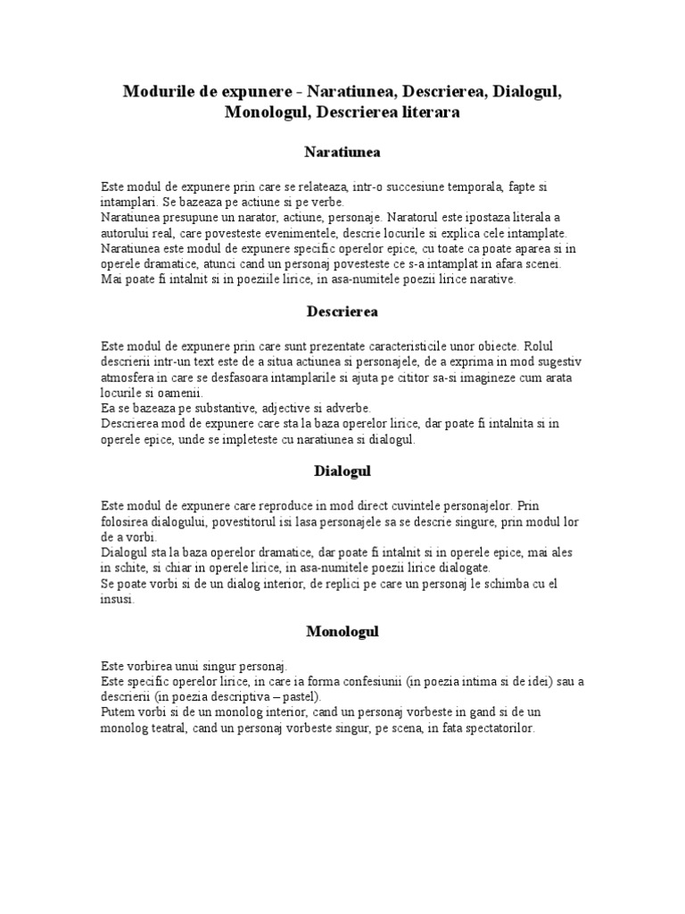 într o operă epică rolul dialogului e de a da dinamism şi de a caracteriza personajele în mod indirect. Tot el scrie pe clipboard schema modurilor de expunere rezultată din răspunsurile elevilor. Modurile de expunere descrierea artistica este in primul rand un mod principal de expunere de or ga ni zare intr un text literar o tehnica artistica ce consta literatura romana. A modurilor de expunere învăţare.