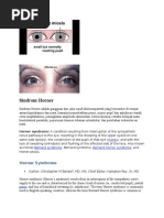 Claude bernard horner sindrom al lui sindrom care afectează un ochi sau ambii caracterizat de o mioză micşorarea diametrului pupilei o îngustare a fantei palpebrale prin ptosis căderea pleoapei superioare şi o enoftalmie înfundarea globului ocular în orbită urmare a unei afectari a sistemului nervos vegetativ simpatic.