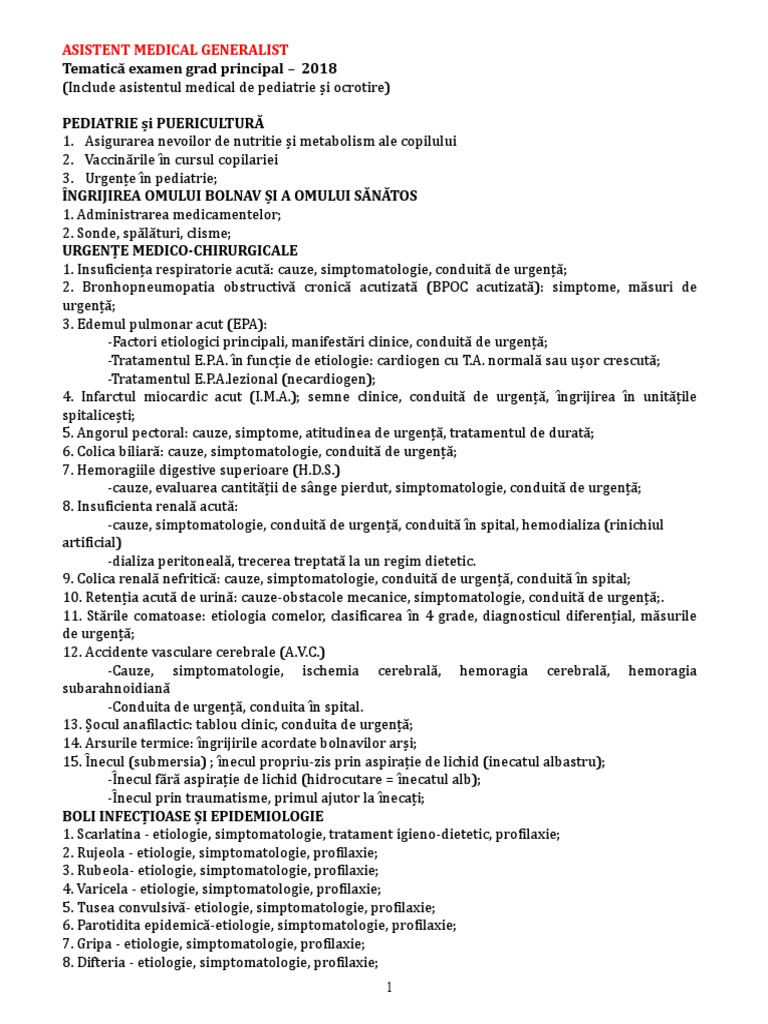 Ordinul asistenților medicali generaliști moașelor și asistenților medicali din românia oamgmamr organizează prin filialele judeţene şi a municipiului bucureşti examenul de grad principal sesiunea 2018 conform ordinului ministrului sănătăţii nr. Testele grilă şi grilele de răspuns la examenul de grad principal sesiunea 2016. Generalist 2018 tematica bibliografie examen grad principal 2. în data de 02 11 2018 examenul pentru asistenţi medicali celelalte specializări altele decât asistenţi medicali generalişti.