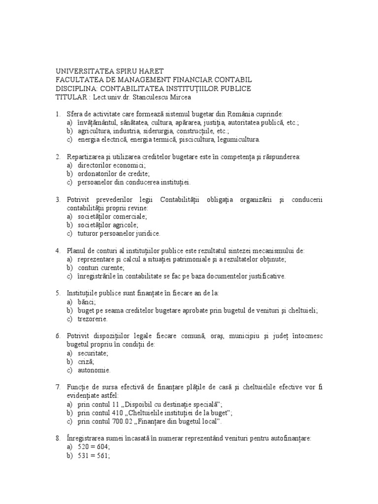 Contabilitate bugetara test grila principiile in baza carora se elaboreaza si se executa bugetul de stat bugetul asigurarilor sociale si bugetele fondurilor speciale sunt. Documentele justificative care stau la baza inregistrarilor in contabilitate angajeaza raspunderea. Care sunt etapele procedurii bugetare. Salt la continut logare inregistrare.