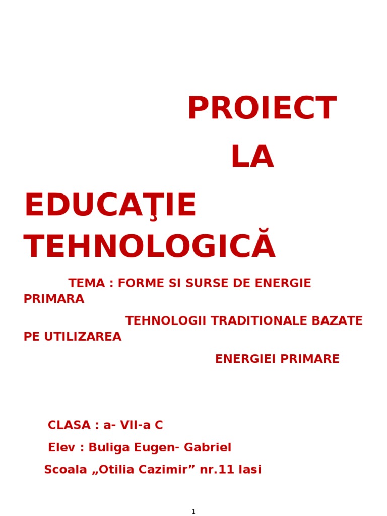 Sunt prezentate in material tehnologii traditionale care functioneaza utilizand surse de energie primara energia musculara hidraulica eoliana imagini sugestive ale acestora necesare insusirii cunostintelor la educati tehnologica pentru elevii clasei aviiia.