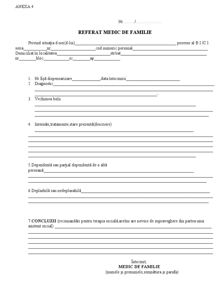 Tipizat referat medical anexa 2. 5 nr scrisoare medicala nume. Model cerere card ue. J40 21864 1994 c u i. Pentru bolnavii netransportabili referatul medical trebuie să conţină date care să justifice din punct de vedere medical imposibilitatea deplasării.
