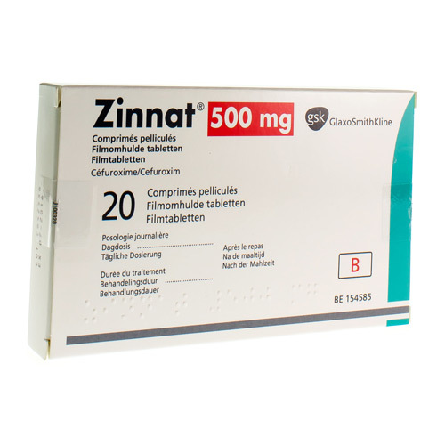 The recommended dose of zinnat is 250 mg to 500 mg twice daily depending on the severity and type of infection. Zinnat 500 mg comprimate filmate ovale biconvexe de culoare alba sau aproape alba marcate cu logo gxeg2 pe cealalta fata. Un comprimat filmat conţine cefuroximă 500 mg sub formă de cefuroximă axetil 601 44 mg. Zinnat este ambalat în cutii cu un blister a 10 comprimate filmate.